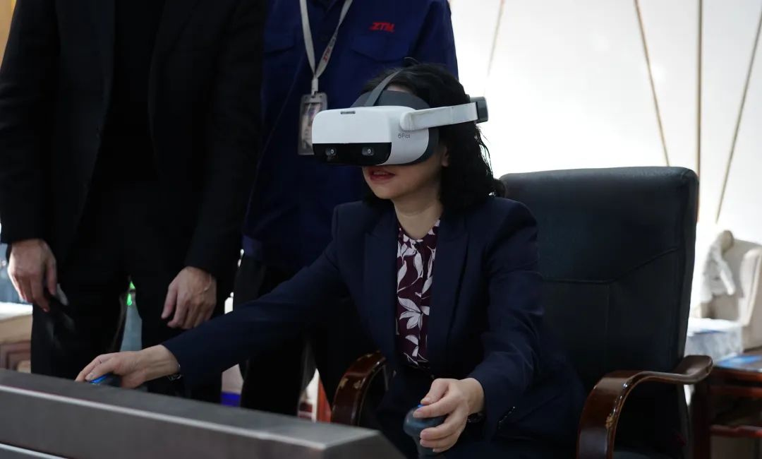 在中天智装罗斌飞董事长、技术研究院智能所曾宁春所长的陪同下,郑蕾局长一行参观了企业展厅,并听取了中天5G+VR智慧塔机的项目汇报。现场演示时,郑蕾局长饶有兴致地戴上VR眼镜体验塔吊操作。郑蕾局长表示说,“体验感很好!”。